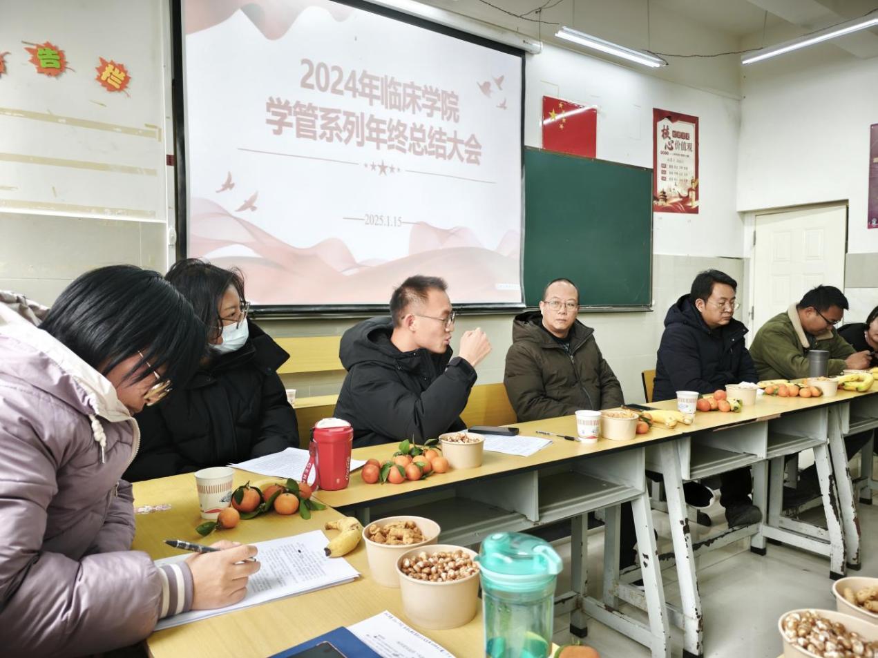 2025年1月15日下午,临床学院2024年学管系列年终总结大会在1教204室顺利召开。临床学院院长王建松、大学生工作部副部长高政南、临床学院学管副院长李建国、学管办和全体辅导员参加会议,共同回顾过去一年的工作成果,展望未来发展方向。本次会议由临床学院学管办主任敖宇蓉主持。