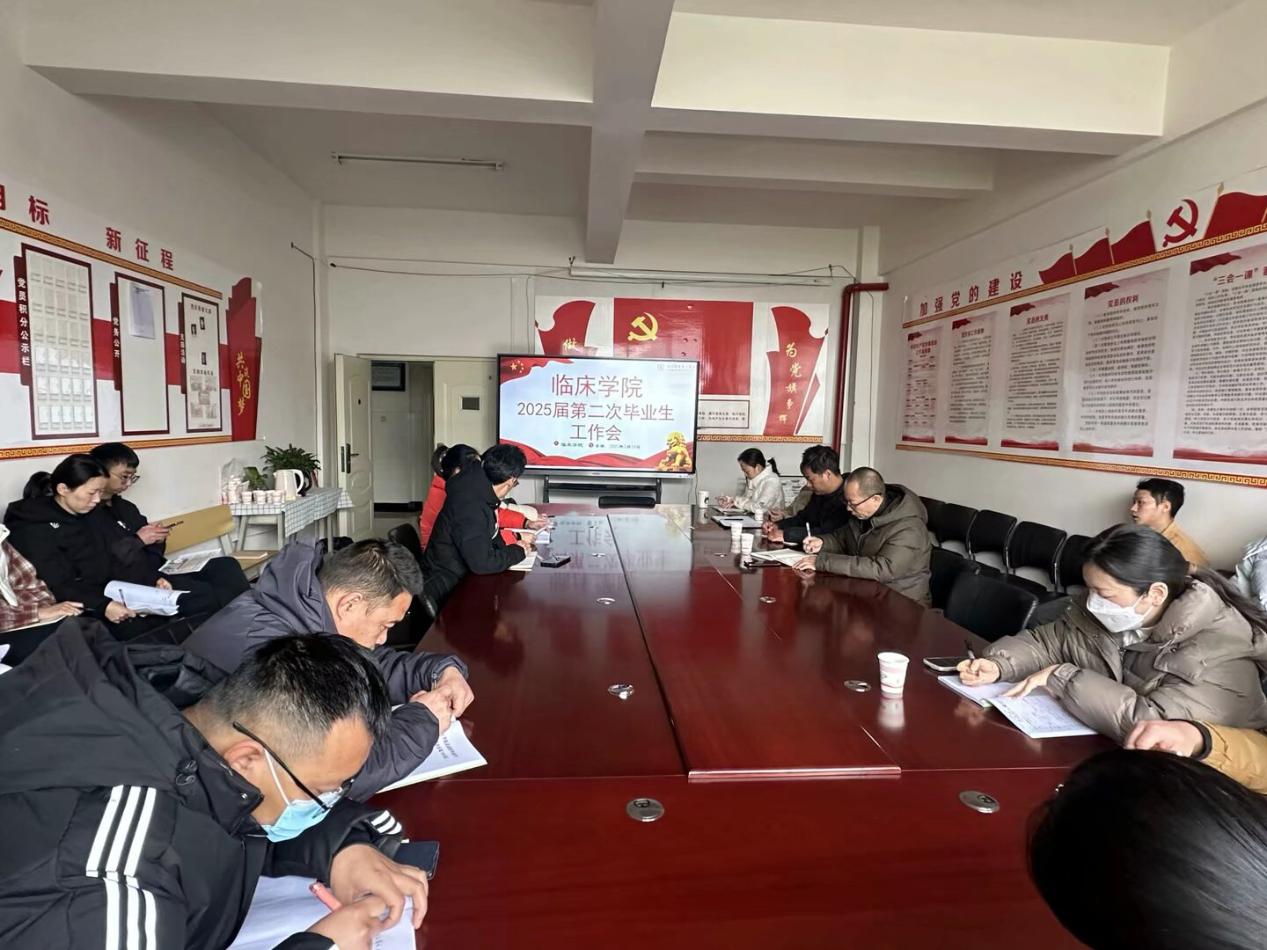为全面提升2025届毕业生就业工作质量,切实增强就业工作成效,2025年3月20日下午,临床学院于临床实训楼405会议室组织召开2025届毕业生就业工作专题会议。学院招就处就业管理与服务科科长周进文到场指导,临床学院院长王建松携党政领导班子出席会议。2025届毕业班辅导员及非党员帮扶教师全员参会。会议由临床学管办李莉主持。