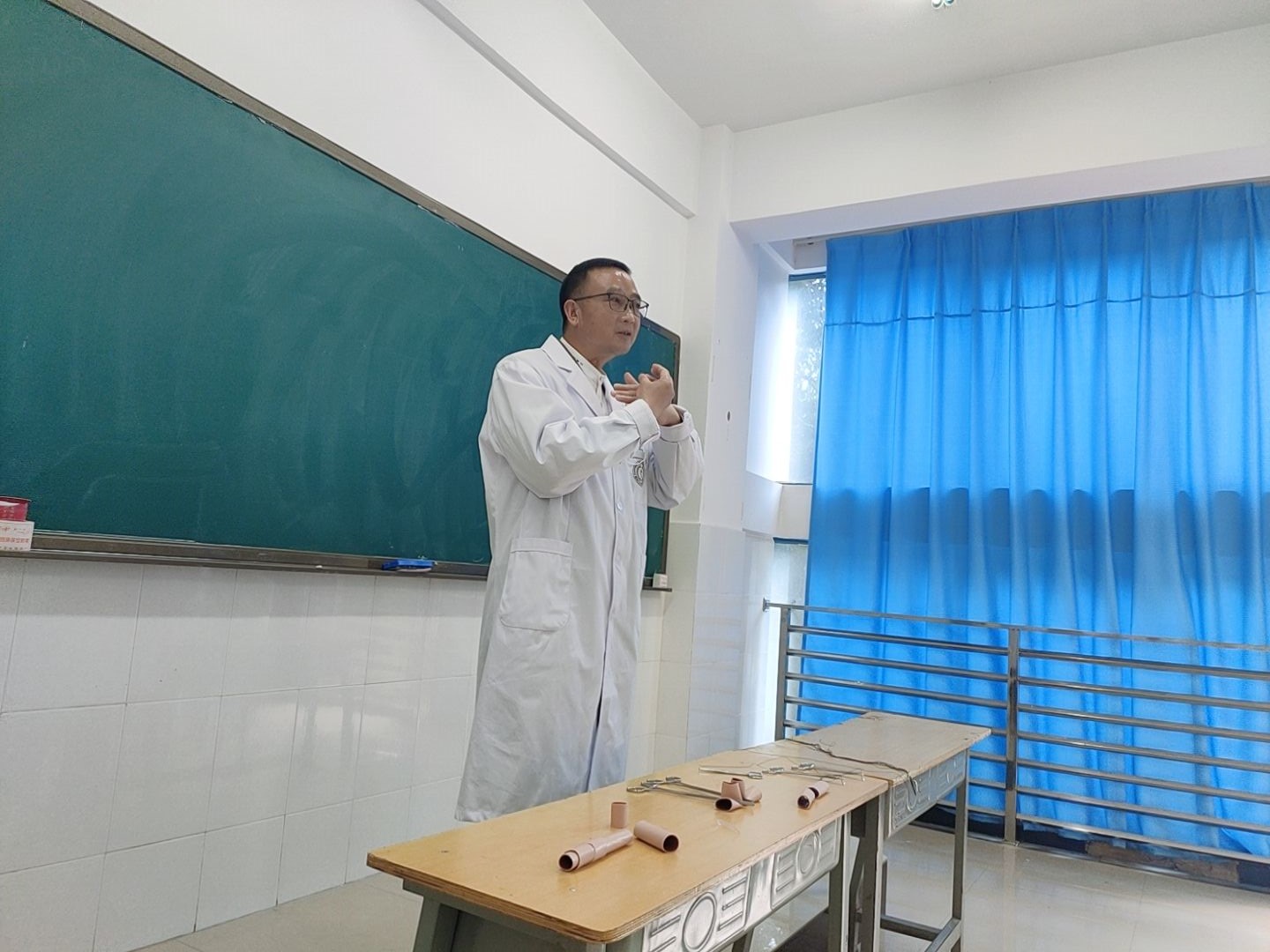 图2 张学平主任在演示石膏固定术