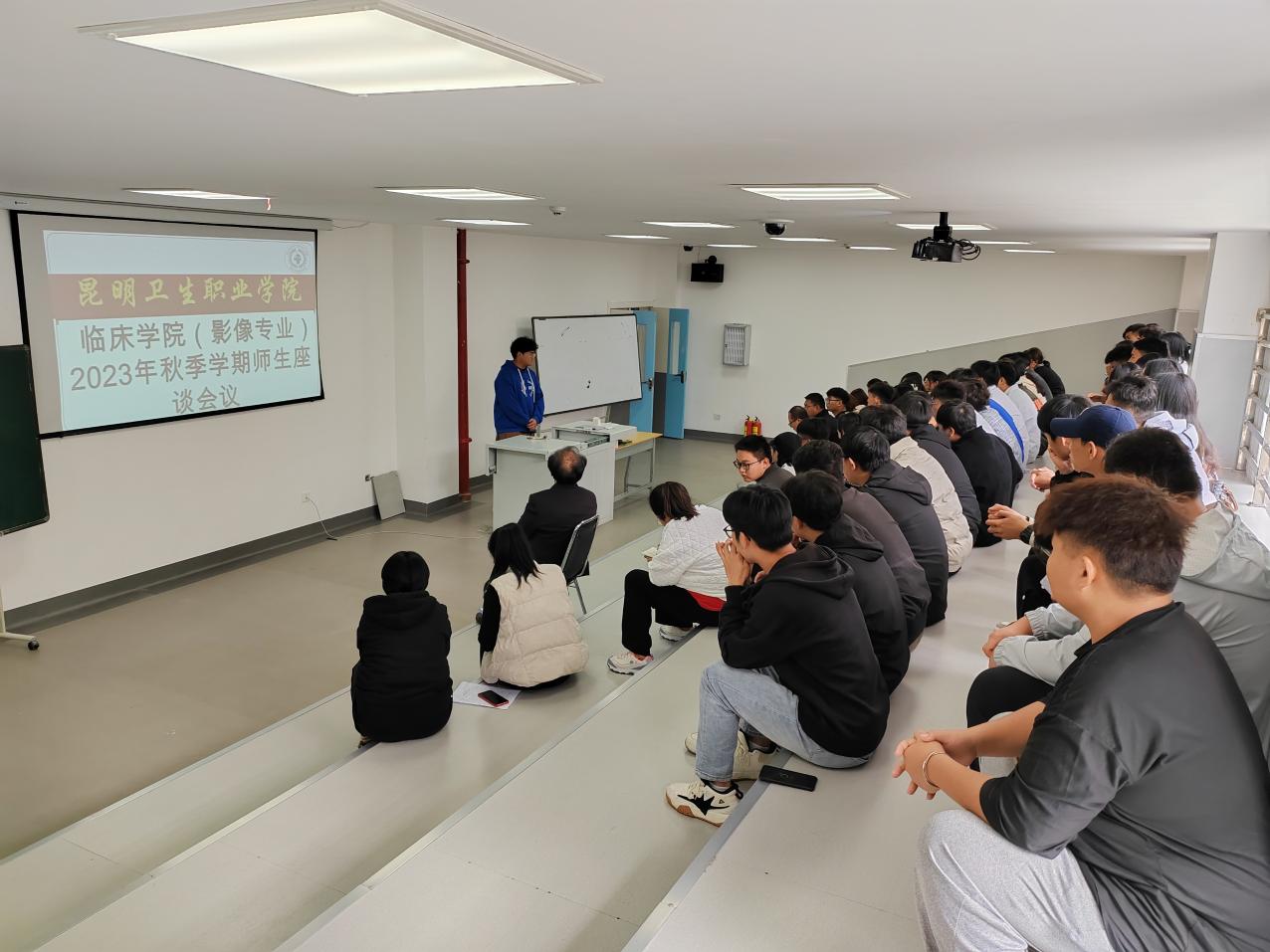 为进一步加强教学管理,提高人才培养质量,给予学生成长的助力,倾听学生的心声,及时发现并解决教、学、管中存在的问题,临床学院(影像专业)于2023年10月11日在208室召开了师生座谈会。临床学院院长助理王建松、学生管理副院长李建国、临床学院第三党支部书记陶敬磊、影像专业学科带头人邵成民、教学办主任邱亚、教学办科员、各教研室主任及16个班的64名学生代表参与了本次座谈会。