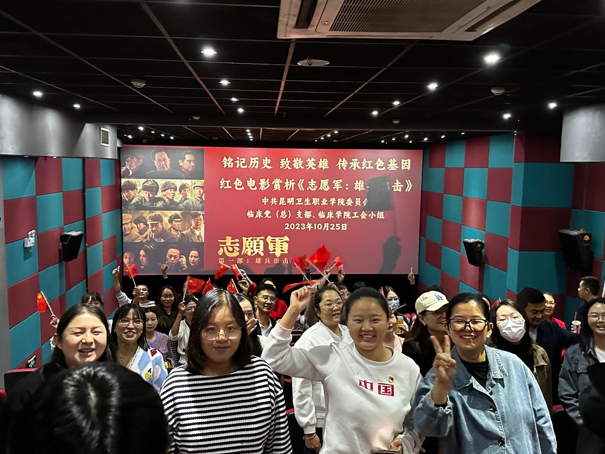 10月25日下午,临床第一党支部组织教师党员及无课教师前往晋宁晶淼鑫影院观看红色电影《志愿军:雄兵出击》主题党日活动,对抗美援朝抗战胜利73周年做深情的回望与致敬,对新中国成立74周年的献礼与高歌。“一幕幕鲜血染红的画面,志愿军用血肉之躯阻敌于国门之外,用鲜血和生命谱写了一段保家卫国的英雄赞歌......”观影结束后,大家被志愿军的英勇精神所感染,纷纷表示作为新时代教育工作者,要全身心投入到工作中,积极为学生教育管理工作贡献力量。