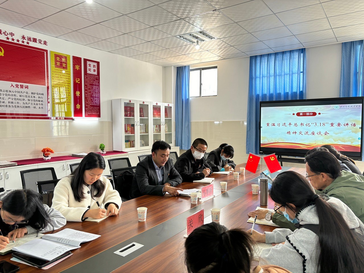 3月19日,学院马克思主义学院召开重温习近平总书记“3·18”重要讲话精神暨思政工作研讨会。学校党委书记马季昕出席并讲话,教务处副处长关欣、党委办公室、党委宣传部、大学生工作部成员及马克思主义学院全体教师参会。研讨会由马克思主义学院教学办主任徐玲菲主持。
