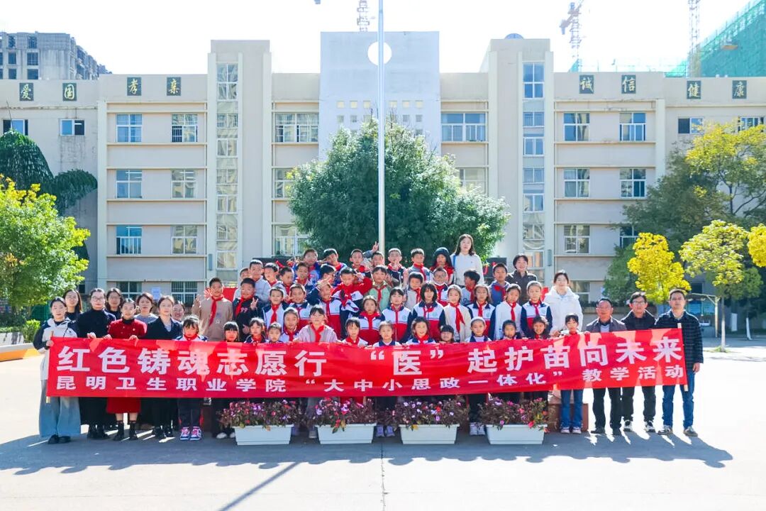 为深入学习宣传贯彻党的二十届四中全会精神,隆重纪念中国人民抗日战争暨世界反法西斯战争胜利80周年,扎实推进大中小学思政课一体化建设,充分发挥高校基层党组织立德树人引领作用,2025年11月27日,KY开元集团官网入口马克思主义学院、口腔学院、中药学院直属党支部联合组织10余名党员教师代表、发展对象及入党积极分子,赴晋宁区昆阳第一小学开展“红色铸魂志愿行,‘医’起护苗向未来”主题党日教学志愿服务活动。