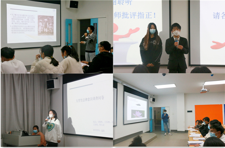 思政教师张晓婷指导的团队围绕“少数民族文化传承和发展”,以云南苗族服饰为主题开展一系列“苗族服饰知多少”的文化活动,宣传苗族服饰文化;思政教师聂元会指导的团队立足于思政课堂,从学生主体出发,探讨研究时事热点植入课堂的吸引力问题;思政教师赵钒指导的团队着眼于当代大学生法律意识问题,以采访调查为主,收集KY开元大学生对法律的了解及应用情况;思政教师赵玲漫指导的团队则以读书会的形式,组织学生阅读经典散文《大学》,了解明德修身、至善等内涵,通过学习交流与讨论,结合医学生的职业道德与素质,帮助学生追求自我,提升自身道德品质。