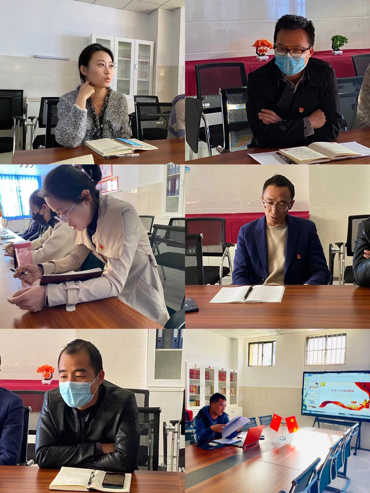 在学习成果交流分享会上,全体党员在杨登光书记的带领下,共同学习研讨党的二十大精神,从习近平新时代中国特色社会主义思想出发,结合工作实践和课堂教学,分享对于学习党的二十大精神的深刻认识。