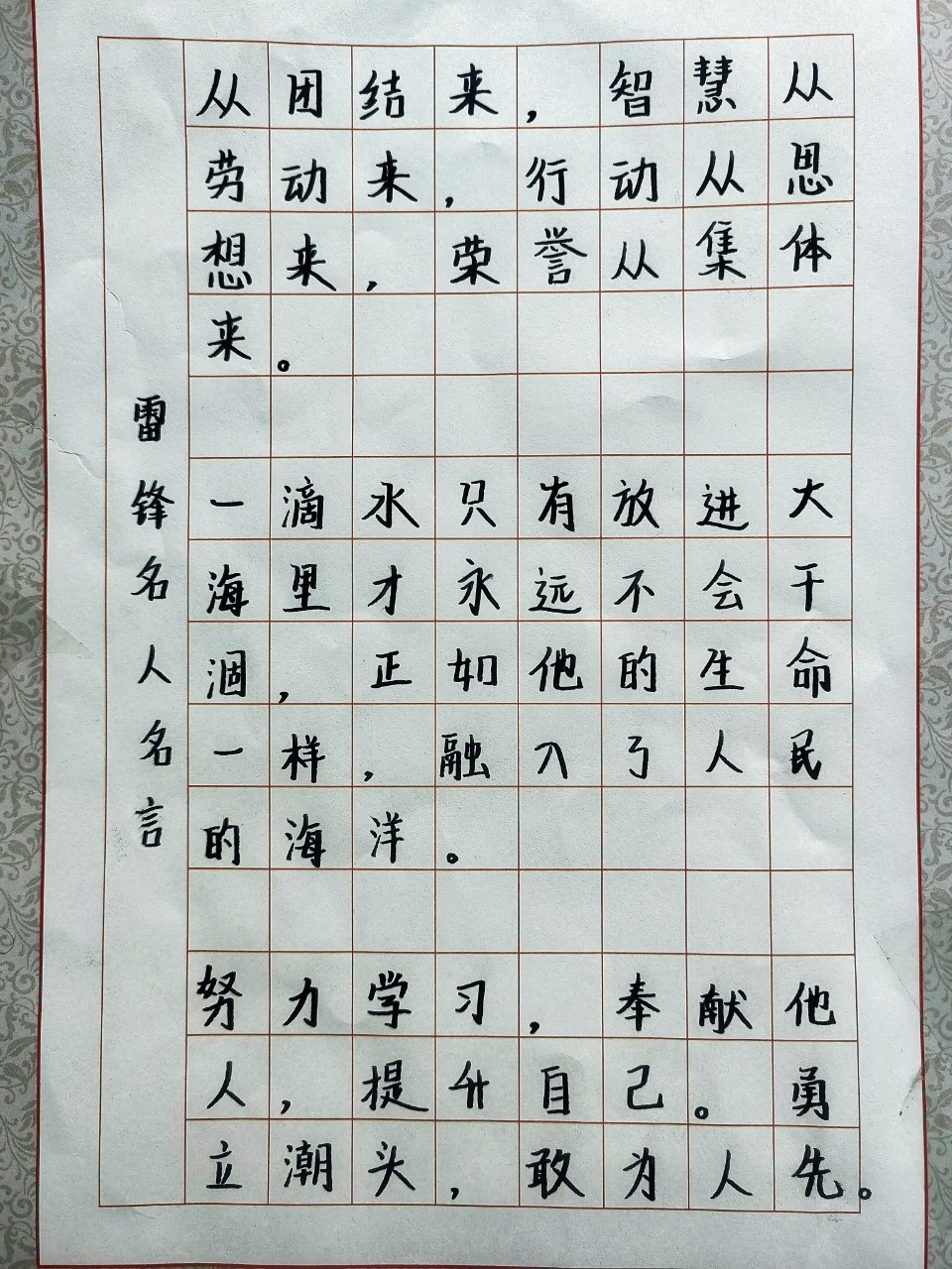 (二)开展“重温雷锋语录,传承雷锋精神”规范字书写比赛