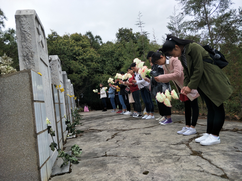 到达烈士墓,在大学生青年志愿者联合会主席卯明荣的主持下扫墓活动正式开始,大家纷纷敬献自己的小白花,庄重的三鞠躬表达了对先烈 的深切哀悼和无尽的敬仰之情。