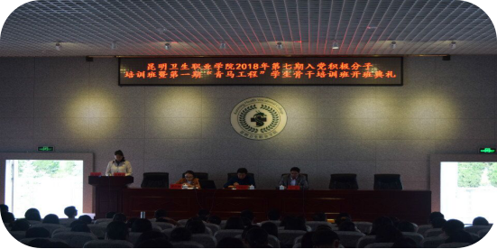 4月18日在学术报告厅进行第一期“青年马克思主义培养工程”学生骨干培训班开班仪式。学院党委副书记张晓刚同志、党委宣传委员宣传统战部部长王斌同志、党校办公室主任团委书记雷红梅同志参加此次开班仪式。闵茹楠同学代表全体学生干部发言,校团委书记雷红梅介绍了举办本次培训的目的、意义、培训计划和相关要求。仪式后,张晓刚副书记为全体学员进行第一次授课《解读十九大精神》。