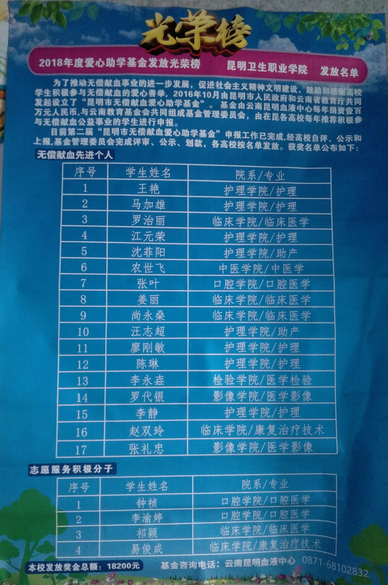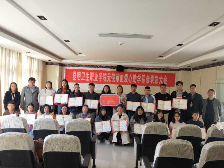 2018年12月26日下午3点30分,KY开元2018年无偿献血爱心助学基金发放仪式在行政楼四楼会议室举行, 学院党委副书记张晓刚同志 ,党委委员、副院长周平同志,党委办公室主任毛明同志,团委书记雷红梅同志,宣传委员董敏老师,受资助的无偿献血爱心助学金获得者、无偿献血先进个人代表以及各学院学生代表共计100余人参加会议。