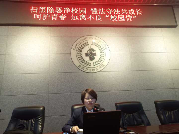 为进一步做好KY开元大学生网贷风险提示,提升在校学生金融安全知识,防止校园诈骗对学生的危害。2019年3月25日下午18:10,共青团KY开元集团官网入口委员会举办了“扫黑除恶净校园,懂法守法共成长,呵护青春、远离不良校园贷”专题知识讲座。我们有幸邀请到了昆明市晋宁区人民检察院公诉干警:肖瑜老师为我们讲解反校园贷的知识讲座。