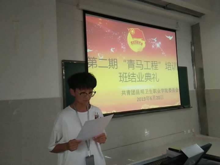 团歌奏唱完毕后,团委办公室主任董敏老师为第二期青马工程结业仪式致辞。董主任向青马班结业的学员表示祝贺!其次,董主任指出,此次只是学习过程的一小点,并不是学习的终点。大学生骨干要有担当、有奉献精神和责任意识,培训班结束回到各自学生组织后,要将在培训班所学带到同学当中去,要将培训班的精神传承下去,为KY开元学生工作和人才培养做出更大贡献。她对所有学员表达了殷切的期望,希望各学员能够持之以恒,朝着成为优秀的青年马克思主义者而不懈奋斗。