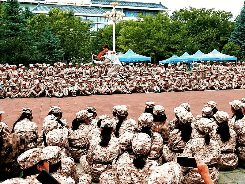 军训不仅只有整齐有序的队形队列,更有有趣和谐的学生教官情,精彩的节目同时也使得2019级新生在艰苦的军训生活中提前融入大学校园文化生活。日后的记忆中,我们的青春之歌里少不了这段多彩军训。