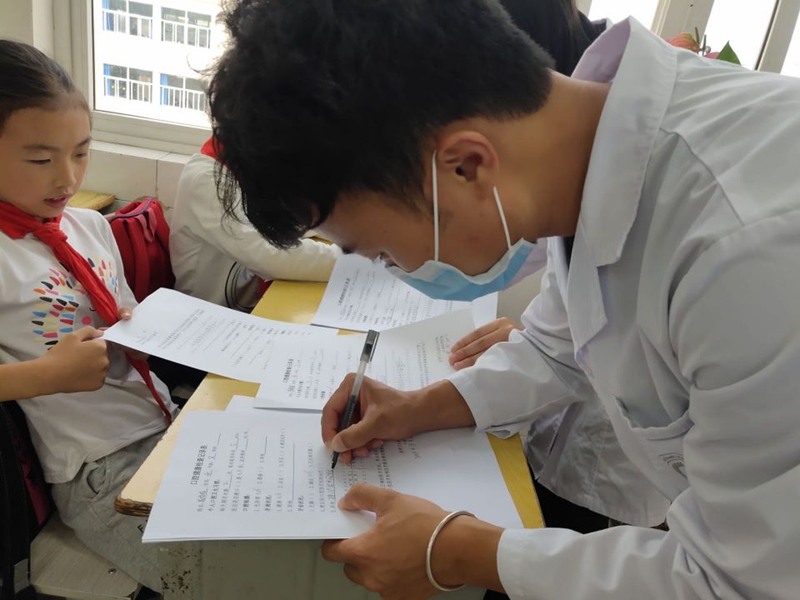 在第二天,我们口腔学院也组织了幼儿园义诊活动,为幼儿园小朋友免费检查牙齿,并普及正确的刷牙方法,为祖国的下一代做好口腔健康的防御。