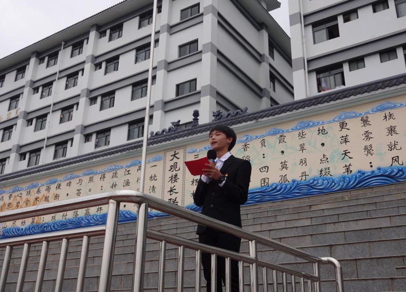 为了隆重庆祝中华人民共和国成立70周年,大力唱响礼赞新中国奋进新时代的青春主旋律,共青团KY开元集团官网入口委员会组织全体团员青年集中开展,“我与祖国共奋进——国旗下的演讲”特别主题团日活动,激励和引导广大青少年,更加紧密的团结在以习近平同志为核心的党中央周围,大力弘扬以爱国主义为核心的伟大民族精神,不忘初心,牢记使命,为实现中华民族伟大复兴的中国梦不懈奋斗。2019年9月25日,学校足球场上彩旗飘扬,气氛隆重。团委会组织部主持人肖茗泽宣布活动开始。