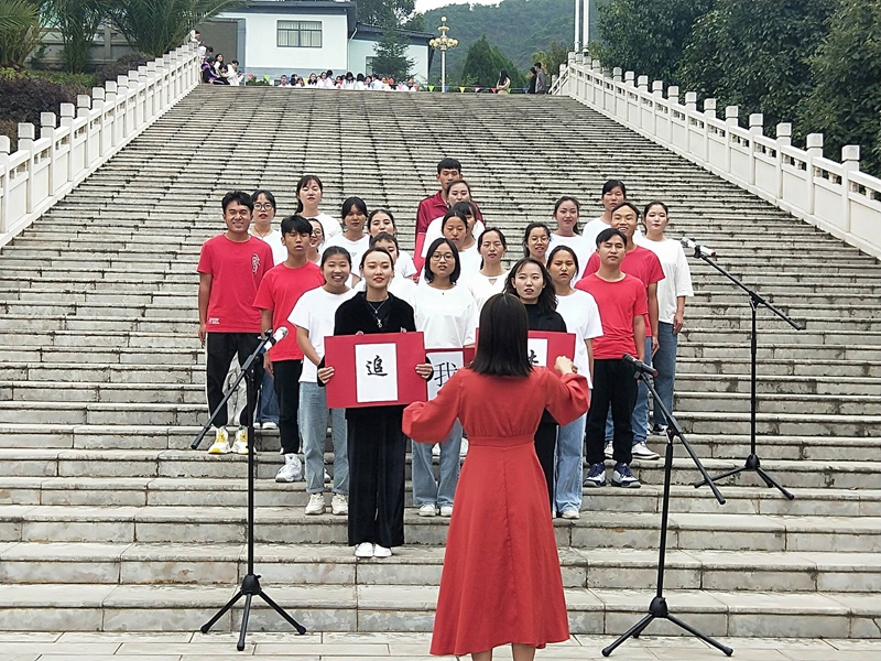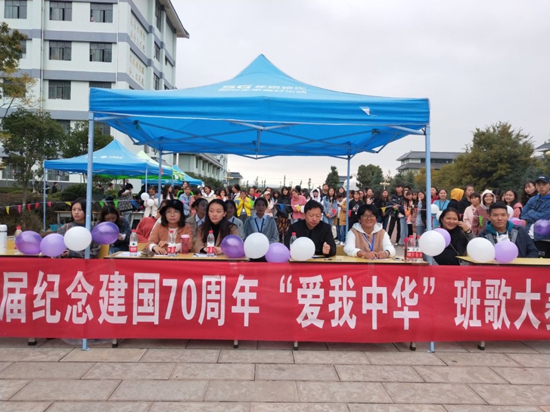 用七十年的沉淀,铸就今天的辉煌。2019年11月13日15:00——16:00在KY开元白求恩雕像下,由大学生社团联合会举办的“第四届纪念建国70周年‘爱我中华’班歌大赛”正式拉开帷幕。出席本次比赛的评委有:团委书记雷红梅老师、团委办公室副主任李叶老师、团委组织委员艾长辉老师以及李友宽老师、黄绍兰老师、郭雪婷老师。参加决赛的班级有:17级五年制康复班、17级五年制护理10班、18级高职护理5、6班、19级高职口腔3班、19级高职护理7班、19级高职护理8班、17级五年制检验3班。