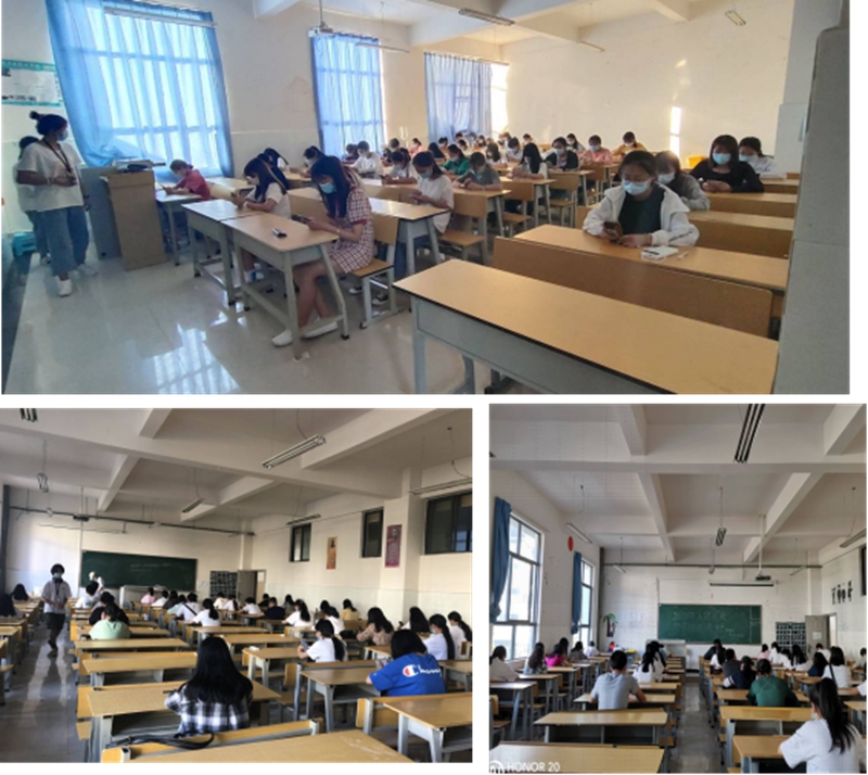 (图 三个考场的考试有序进行中)