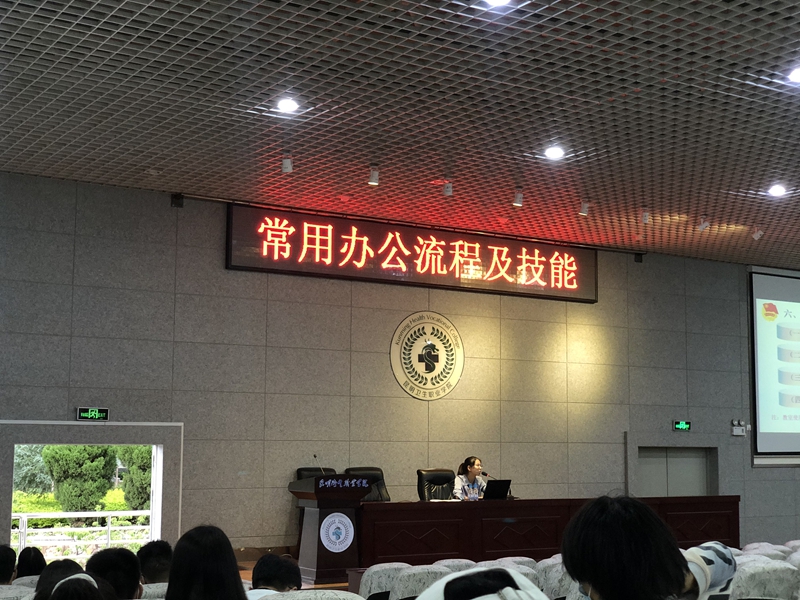 今天的主讲人是学院团委副书记董敏老师,她所讲的主题是《常用办公流程及技能》培训的开始董老师就为同学们讲解了我们有一个亲切的称呼“团团”,作为“团团”需要有吃苦耐劳、团结友爱、乐于奉献、虚心好学、认真踏实的品质,紧接着讲解了公章的意义及使用、内部物资使用、活动经费审批、场地使用登记等办公流程和如何正确并正规的写一份好的策划书,董老师在讲解中还指出学生干部的工作原理应做到“四勤五心六干”、同时应有决策、管理、组织等基本能力和工作艺术。