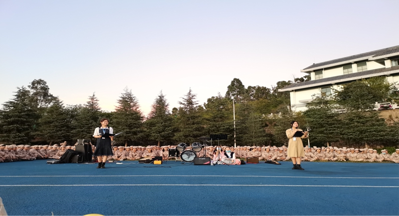 活动在音乐部带来的一首《蒲公英的约定》拉开序幕,他美妙动听的歌声时而高昂,时而悠扬,缓解了新生们军训了一天的疲劳,令人陶醉。紧接着舞蹈部带来了《ice cream cake》舞蹈表演,点燃了全场气氛,吸引了全场人的目光,掌声不断,让全场感受了青春舞动的活力!音乐部同学又带来了一首歌声优美的《love the way you lie》,全场人合唱,令人陶醉。快到了表演的尾声,音乐部的同学带来了一首激情四射的《再见杰克》以及《西湖》,他们的表演,震撼全场,台下喝彩声不断。