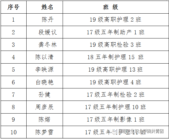 2020-2021年度“十佳大学生”名单: