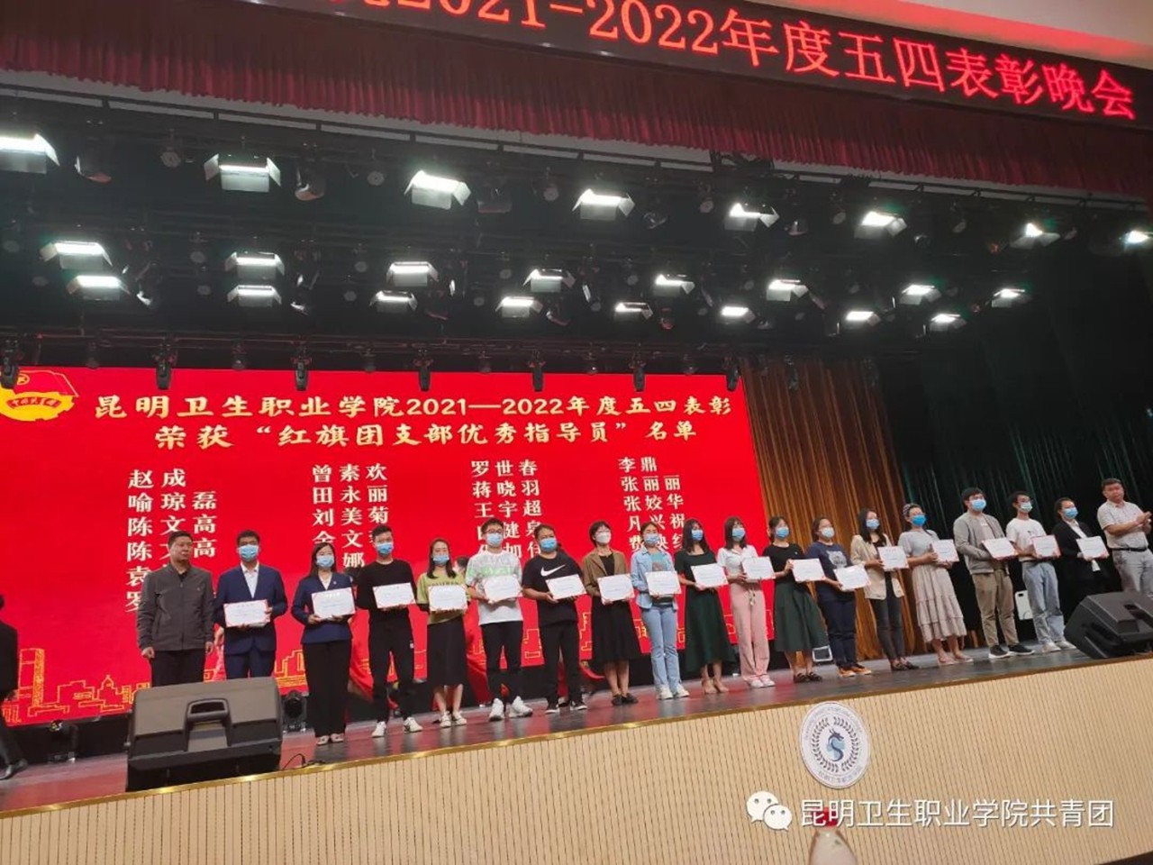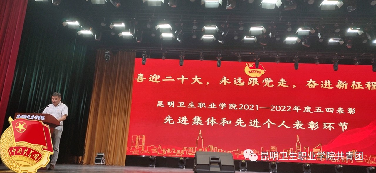 以青春之诗咏青春之志,传承红色基因,在五四青年节即将到来之际,为弘扬五四精神,传承优良传统,表彰学院先进集体与个人,并以此树立典型,发挥先进青年模范和优秀团员典型的榜样示范作用,进一步鼓舞和激励广大昆卫青年学子刻苦学习、积极进取。4月28日晚,学院团委于明德会堂举行“喜迎二十大 永远跟党走 奋进新征程”主题“五四”表彰晚会。学院党委副书记张晓刚同志,党委委员、组织部部长、副院长周平同志,各处室负责人、二级学院党支部班子成员、全体辅导员、团支部代表共同参加了本次晚会。