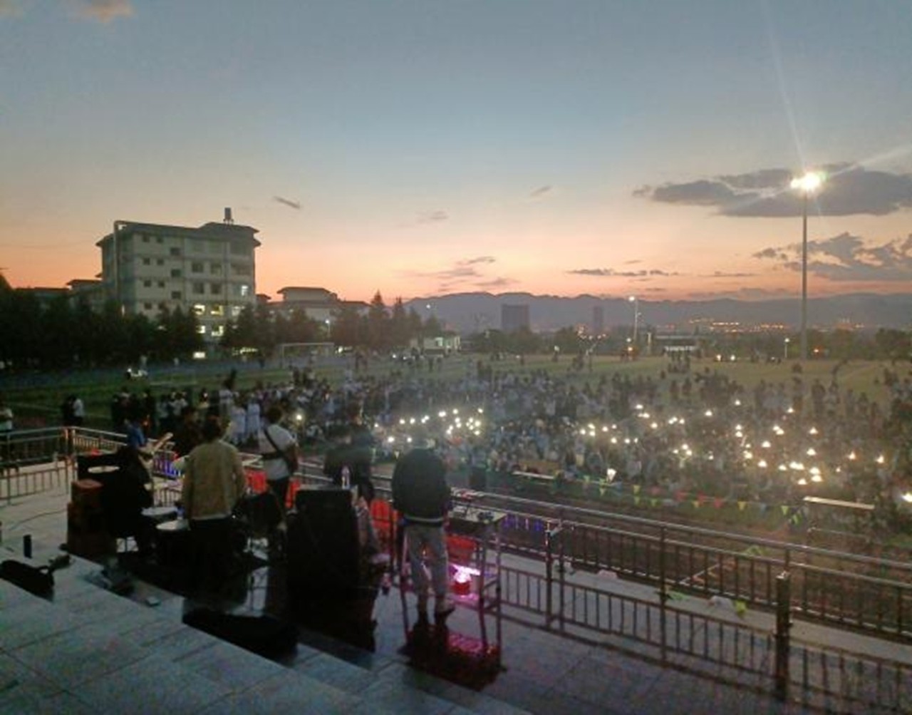夜幕还未降临,足球场已经人头攒动,大家幕天席地,围坐在舞台四周,自在惬意。一支爵士舞蹈拉开了音乐会的序幕,燃起了大家的热情。此次音乐会不仅有合唱、独唱,还有激情澎湃的乐队,一首首动人的歌曲让同学们感受到了青春的昂扬,音乐是表达情感的极佳方式,我们以最真挚饱满的歌声,为疫情下的春日,点亮更多希望的烛火。