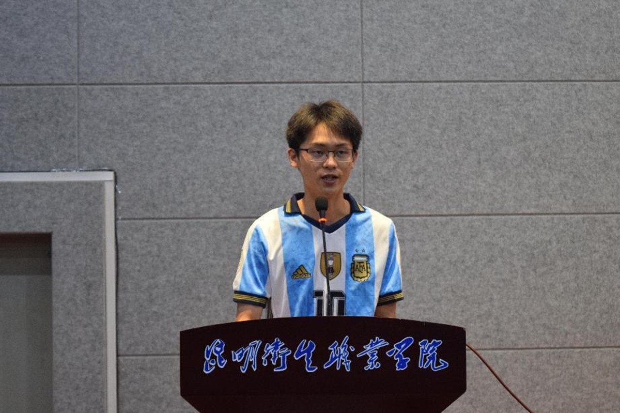 紧接着, 每一位老干部上台,由每个部门新的负责人,向他们献上代表荣耀,代表着离别,代表着不舍的鲜花。所有人都知道,六月就是离别的季节,但就像办公室代表肖茗泽说的:“各位要离开学校的同志们。生活就像一场足球,有领先时的优越,有被逼平时的沉闷,也有落后时的低迷。