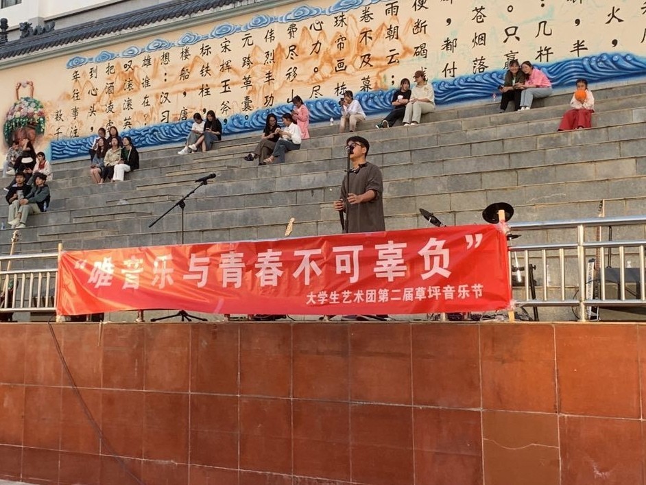 为丰富KY开元学子的课余文化生活,缓解学习和生活压力,提升同学们对艺术的热爱与追求,同时也为展现当代大学生的青春风采,大学生艺术团与吉他社在4月21日晚在足球场共同举办了“第二届草坪音乐节”活动。