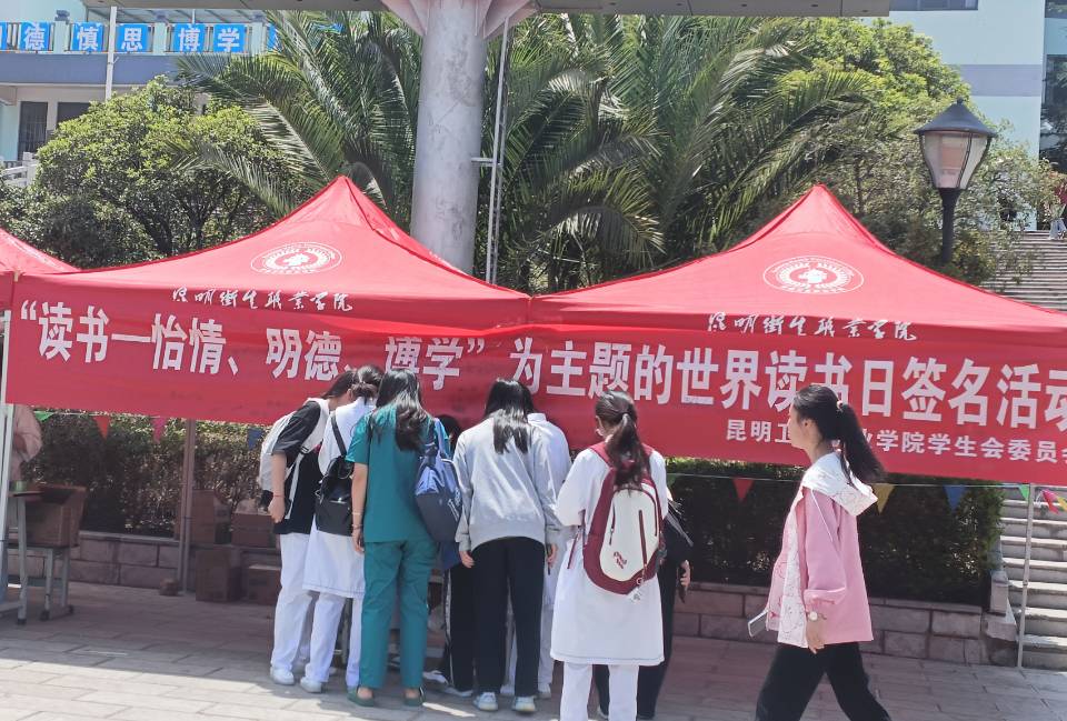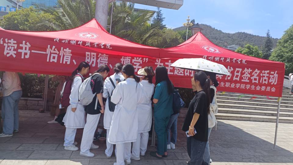 4 月 23 日,活动以“世界读书日”为目的收集关于医学类知识的相关问题。参与的学生采用抽签的方式抽取问题并回答,与在场学生会工作人员核对答案,答案正确后即可在活动处领取奖品。活动现场,来参与的昆卫学子非常多,同学们相互学习进步,现场气氛十分活跃,营造了浓厚的读书氛围。