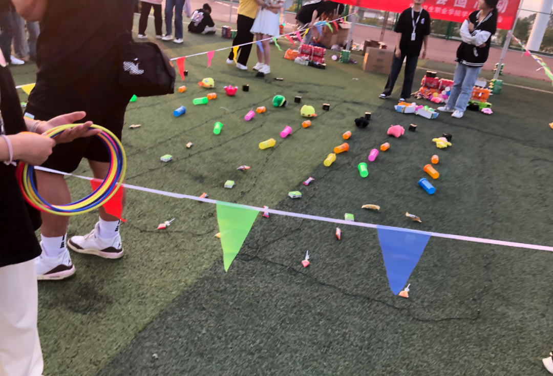 大家来套圈,春风为你而来,繁花为你而开美好的事物正在为你发生“套”住时光,“圈”住快乐将自己喜爱的礼物收入囊中。瞄准!瞄准!再瞄准!幸运之圈成功落地棒棒糖,快乐水“饮料”,水杯,蓝牙音响等,统统被大家收入囊中,足球场上充满了欢声笑语。