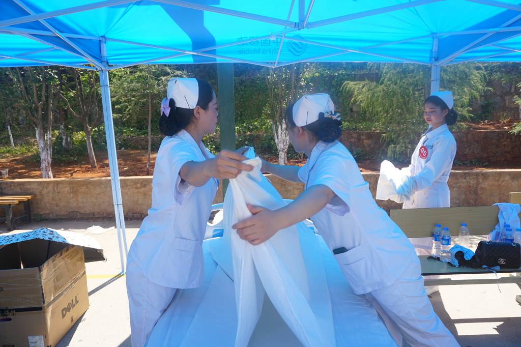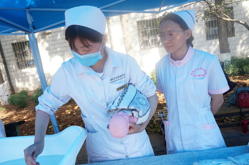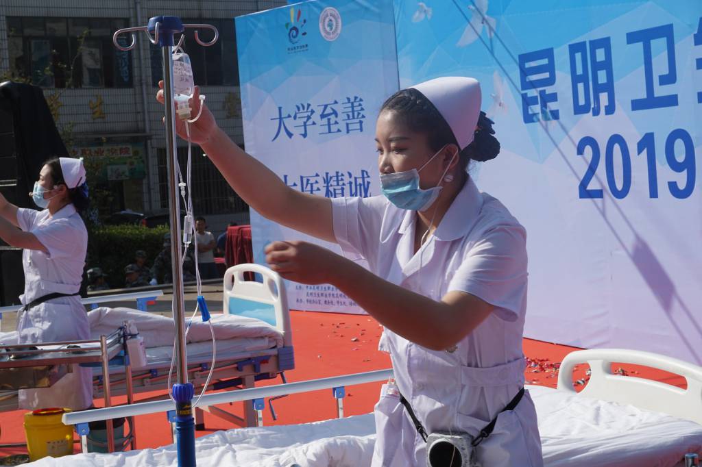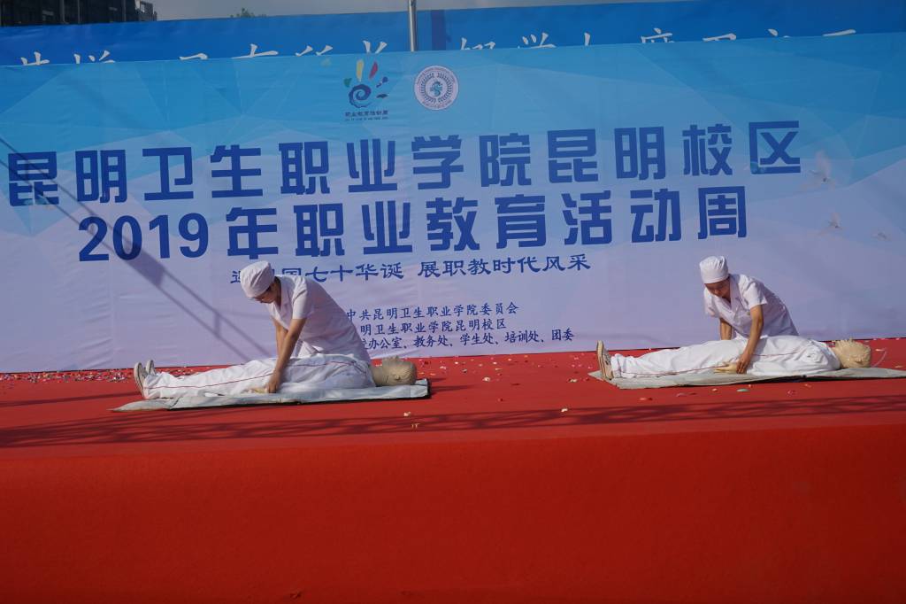 2019年5月15日早上八点三十分,职教周开幕式在海屯校区举行。开幕式结束后,徒手心肺复苏、护理礼仪和静脉输液相继进行展示。徒手心肺复苏和静脉输液在今年的云南省职业技能大赛中取得了二等奖的好成绩。心肺复苏术是针对心博骤停病人的一种行之有效的抢救技术,能使病人立即恢复自主呼吸和心跳,是医学生必须掌握的基本技能。静脉输液治疗是临床护士必须掌握的常规护理技术操作,虽看似简单,却有不少技巧。让我们来跟随现场图片一睹风采吧。