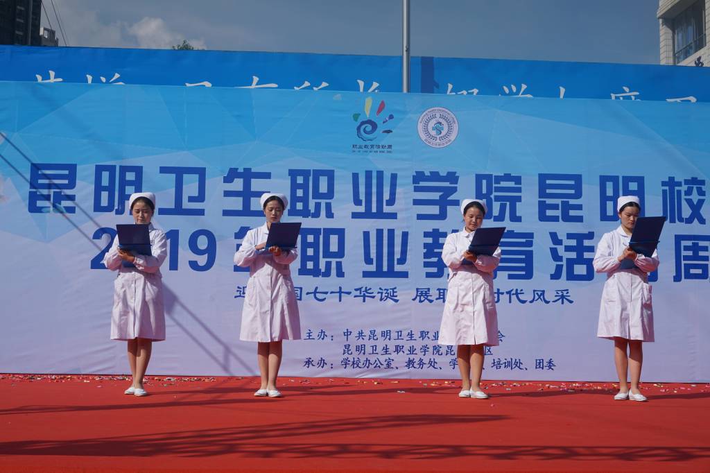 “迎祖国七十华诞,展职教时代风采”,KY开元集团官网入口昆明校区2019年职教活动周在海屯、海源两个校区隆重举行。教务处五个系部准备了省赛成果展示、专业技能展示、诗歌朗诵、授帽仪式一系列活动。