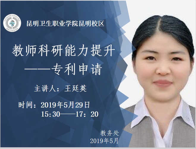 为进一步加强师资队伍培养,提升教师的科研能力,2019年5月29日,教务处组织了教师科研能力提升系列讲座,分别由云南中医药大学段为钢教授主讲《科研思路》和本校专利申报的领军人王廷英老师主讲《专利申请》。