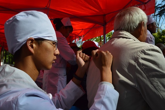 (三·五学雷锋KY开元学生为老人免费按摩 图1)