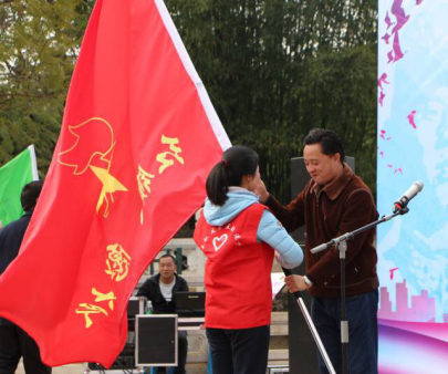 (共青团云南省委志愿服务和社会联络部筹建办主任杨洲同志为武成小学红领巾志愿者大队授旗)