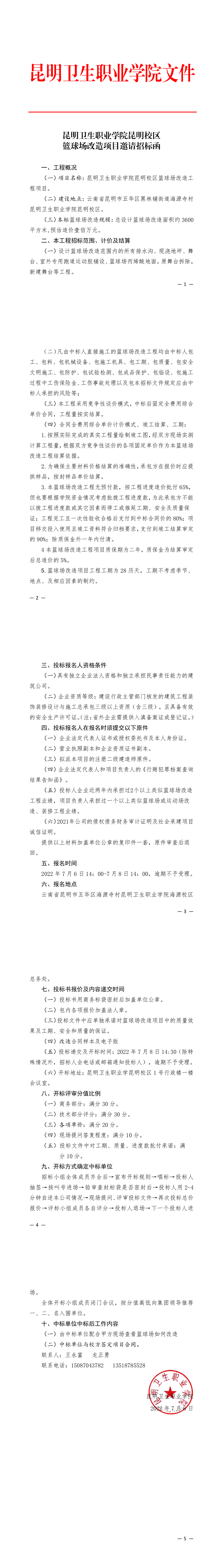 KY开元集团官网入口昆明校区篮球场改造项目邀请招标函
