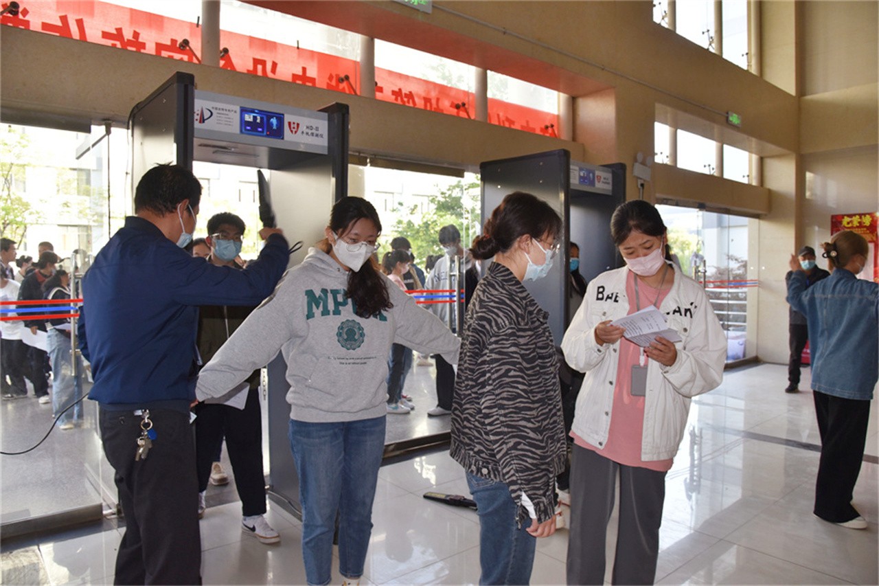 本次专升本考试中首次使用智能安检门进行入场安检,考生只能携带必要考试用品,手机和随身物品均不得带入考点,确保考试的公平、公正。