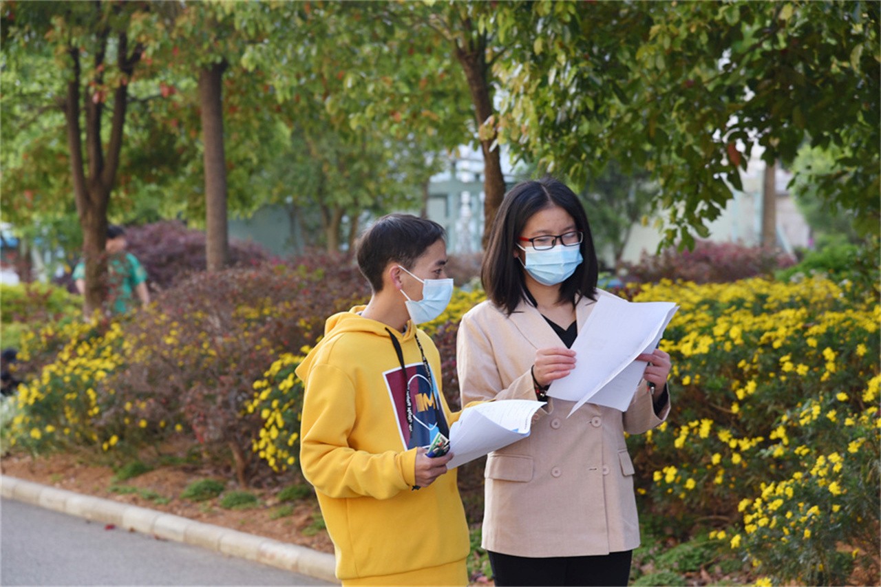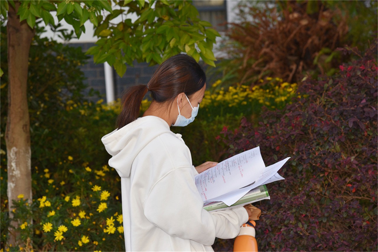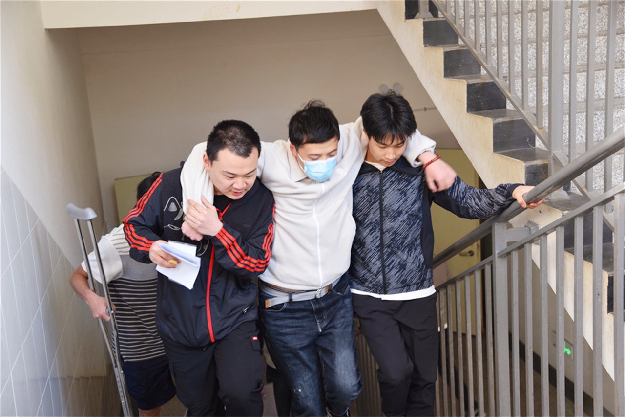 开考前,校园各个角落,仍能捕捉到考生们认真复习、积极备考的身影。考试期间,一名考生腿脚受伤行动不便,一同参加考试的同学热心帮助,上前搀扶,顺利将考生送到考场。