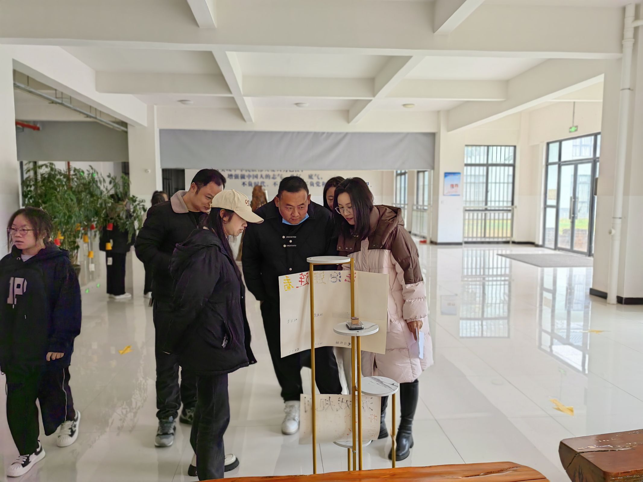 活动现场还准备了法律谚语、法律条文、法律术语等纸条,通关教职工发挥创意,粘贴在展板上,组成“法条拼贴诗”。最后由在场教职工进行投票,评出前三名,并获得奖品。