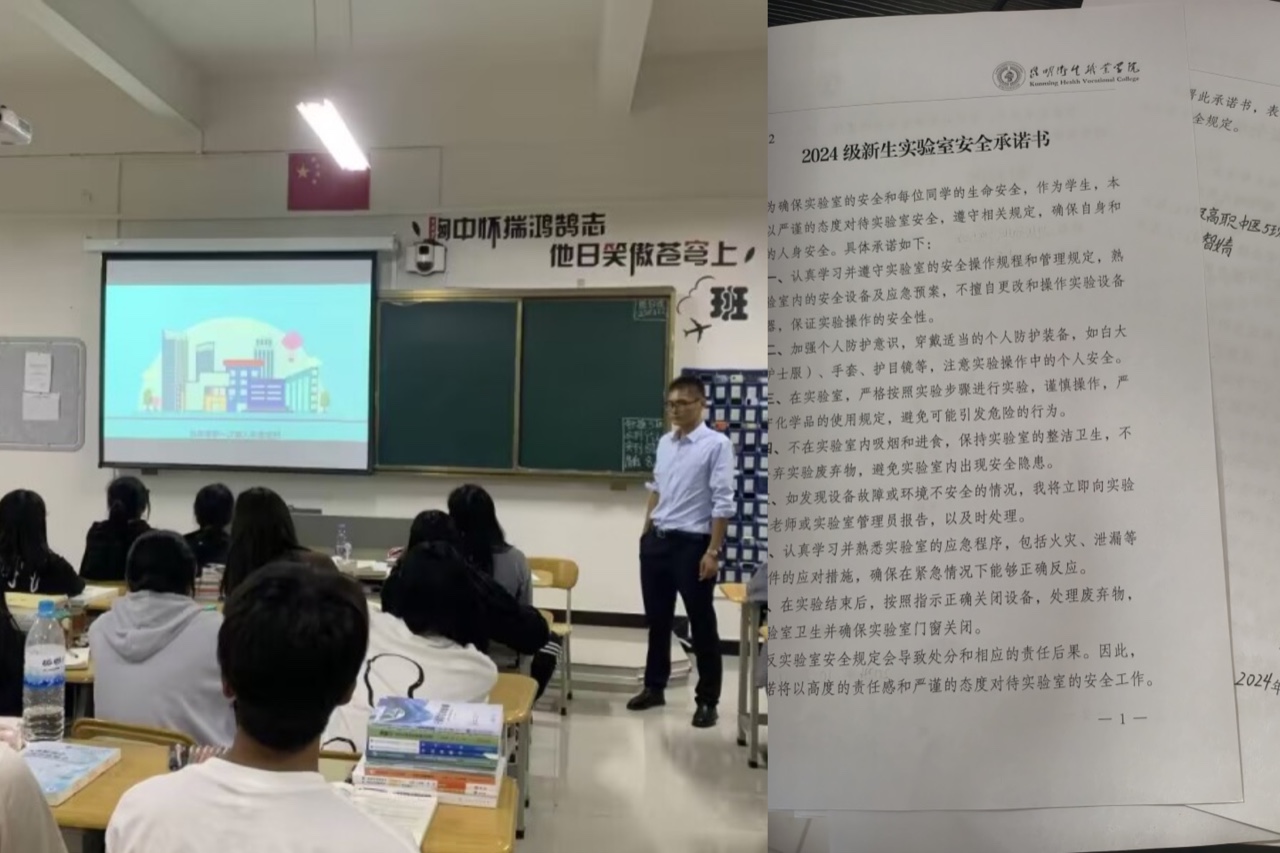 为进一步加强实验室安全管理,提高同学们的自我保护能力和实验安全意识,确保学生在实验室学习中的安全。根据KY开元集团官网入口关于印发《KY开元集团官网入口实验室安全管理实施细则》的通知昆卫院〔2024〕46号、《KY开元集团官网入口实验室安全分级分类管理办法(试行)》的通知昆卫院〔2024〕111号及《教务处关于开展新生实验室安全教育的通知》昆卫教〔2024〕174 号等文件精神,中医学院于10月8日到10月17日期间组织2024级全体新生(共计:1396人次)开展了为期两个周的实验室安全教育系列活动。