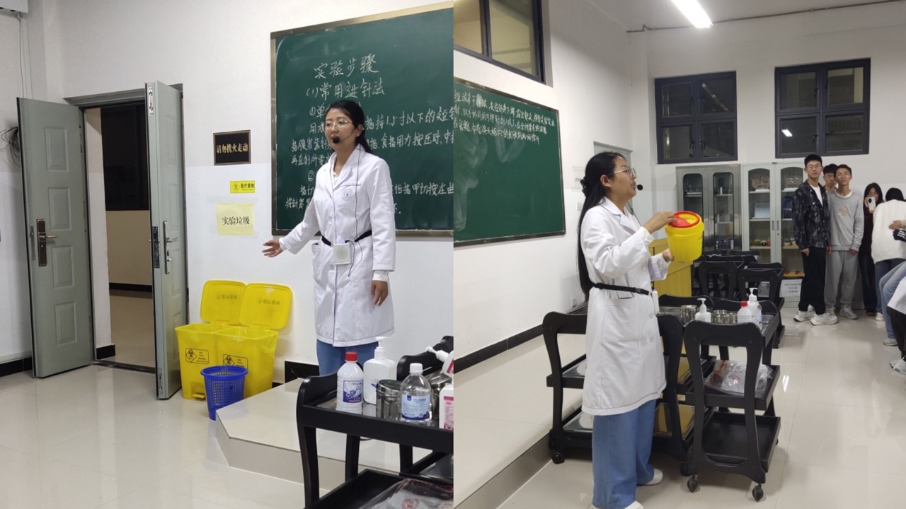 紧接着,在中医学院教学办老师的带领下,24级新生参观了中医学院的各间实训室。实训室内,23级学生助教们全神贯注地进行着技能展示,他们的每一个动作都精准而娴熟,仿佛在书写着中医实训的精彩篇章。24 级新生们围拢在四周,眼神中充满了好奇与期待。通过这次参观,新生们对未来三年需要学习的实训技能有了初步的认识,那一个个熟练的操作、一件件精密的仪器,如同闪耀的星星,照亮了他们即将踏上的中医学习之路。在这个充满着知识与探索的实验室里,新生们感受到了中医实训的魅力与挑战,也为他们的学习生涯注入了新的动力和希望。