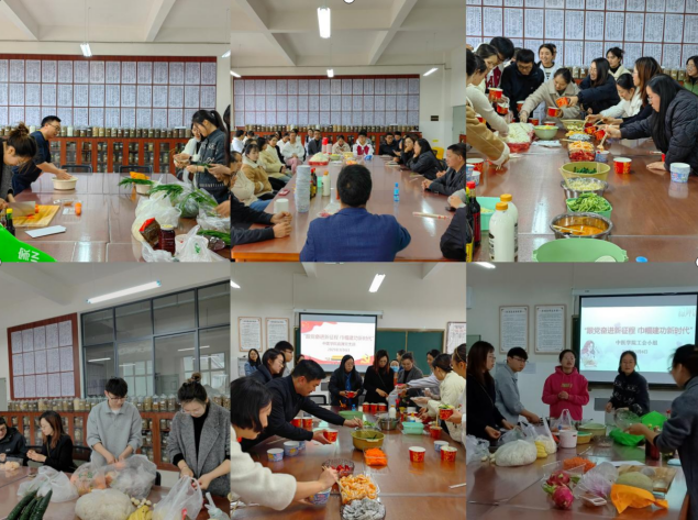 随后,活动进入了轻松愉快的“巧手展风采”环节。教职工们首先进行原料的准备,大家分工合作,进行水果蔬菜的清洗、切块装盘,自行进行凉米线制作和水果沙拉创意比拼。大家纷纷拿出看家本领,从食材选择到调料搭配,都倾注了无限巧思和热情。现场欢声笑语不断,气氛热烈融洽。
