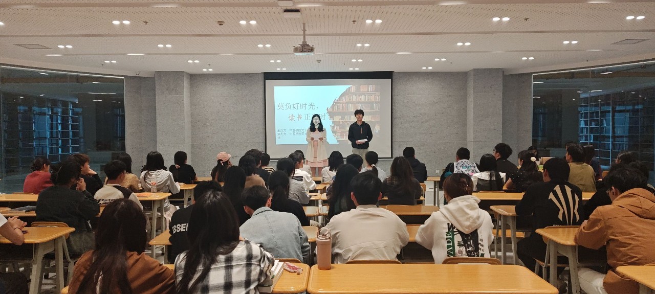 活动在同学们的积极参与中拉开帷幕。经典诵读环节中,同学们声情并茂地诵读了《黄帝内经》《伤寒杂病论》等中医药经典著作中的精彩篇章,展现了中医药文化的深厚底蕴。演讲环节里,同学们围绕“阅读与成长”“读书的力量”等主题展开精彩演讲,分享了自己在阅读过程中的感悟与收获,引发了现场师生的共鸣。好书分享环节更是将活动推向高潮,同学们纷纷推荐自己喜爱的书籍,并阐述推荐理由,激发了大家的阅读兴趣。活动最后设置了图书漂流活动和阅读马拉松比赛,同学们把阅读完的书籍投放到图书漂流角,实现了图书资源的循环利用,更搭建起一座传递知识与爱心的桥梁。阅读马拉松,期待有更多人加入阅读的行列,共同播撒知识的种子!