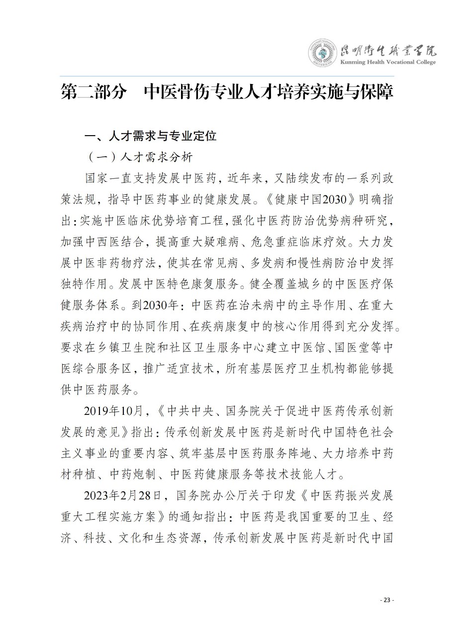 中医骨伤专业人才培养方案(2023级)