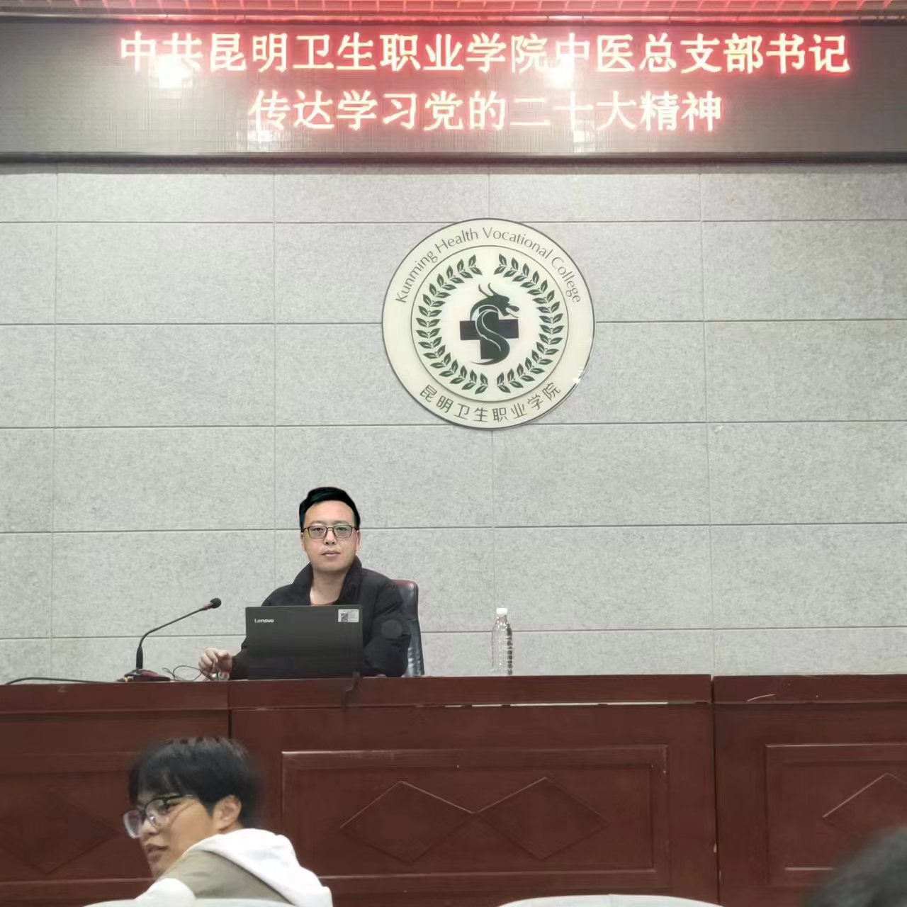 为深入学习宣传贯彻党的二十大精神,切实把广大党员干部和全体师生员工的思想统一到上级的决策部署上来,以推进学院高质量发展的实际行动把党的二十大精神落到实处,根据工作安排,中共KY开元集团官网入口中医党总支于2022年11月22日组织中医党支部召开学习党的二十大精神专题学习讲座,本次讲座包括中医学院全体党员同志以及600余名中医专业学生,讲座由中医党支部副书记余建坤同志主持。