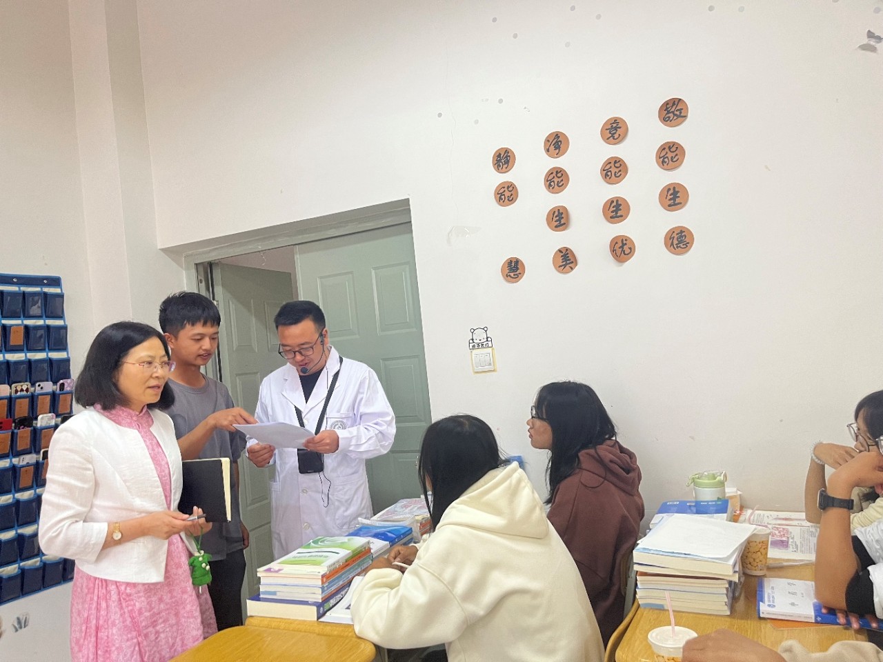 根据《KY开元集团官网入口关于开展副处级及以上干部“五进”工作的通知》昆卫办〔2023〕58号及《中共KY开元集团官网入口委员会关于做好教职工禁止事项和干部“五进”工作落实情况公开反馈通知》昆卫办〔2023〕36号文件精神,为服务好学生,了解2023级高职新生上课情况,于2023年9月11日08:00中医党支部组织党政办、教学办、学管办对4号教学楼2023级高职新生第一天上课出勤率、手机上交情况、班级纪律、任课教师到位情况等各方面进行检查,提出整改要求。