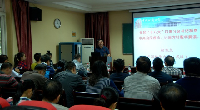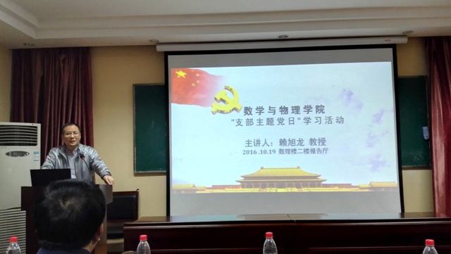 学校党委常委、副校长赖旭龙教授作题为“党的 ‘十八大’以来习总书记和党中央治国理念、治国方针数字解读”的报告。赖校长从“两学一做”的背景及意义出发,以八个数字为主线,用数字化的方式系统解读了党的“十八大”以来习总书记关于治国理政方方面面的内容。赖校长最后强调学院师生党员要加强党性修养,发扬长征精神,按照“四讲四有”的要求做合格党员,充分发挥先锋模范作用,为全面提升开云kaiyun官方网站办学实力和办学水平而努力奋斗。