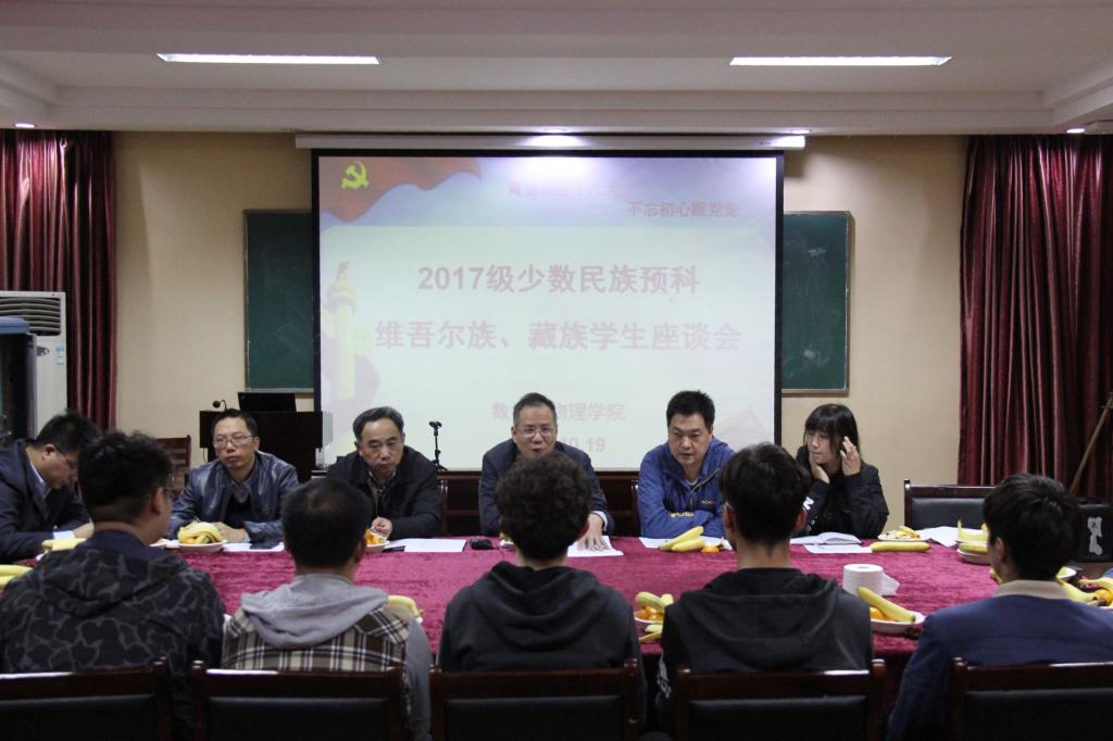 10月19日下午3:00,正值十九大隆重召开的第二天,开云官网组织少数民族预科维吾尔族、藏族学生在数理楼212会议室召开座谈会。参加座谈的领导老师有院党委书记李宇凯、副院长程永进、副院长黄刚,学工组的各位辅导员老师以及十五名预科生参会。座谈会由院党委副书记李杰主持。