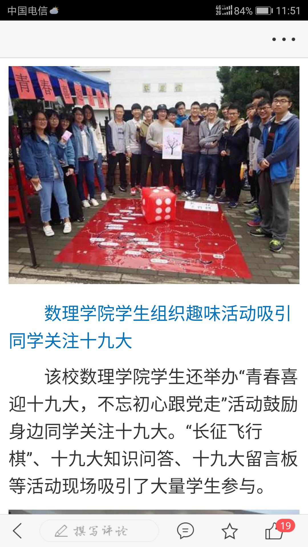 2017年10月21日,光明日报客户端报道《中国地质大学(武汉)掀起学习党的十九大报告热潮》,其中开云官网“青春喜迎十九大,不忘初心跟党走”活动被报道。详见链接:https://s.cloud.gmw.cn/2016/c/2017-10-21/972932.shtml