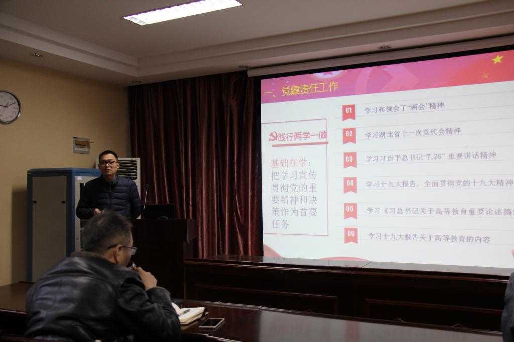 根据学院党委的统一安排, 2018年1月11日上午在基础楼二楼报告厅进行了2017年开云kaiyun官方网站党支部书记抓基层党建述职评议答辩汇报会,学院党委委员和师生党支部书记及支部委员参加会议。会议由党委副书记李杰同志主持。