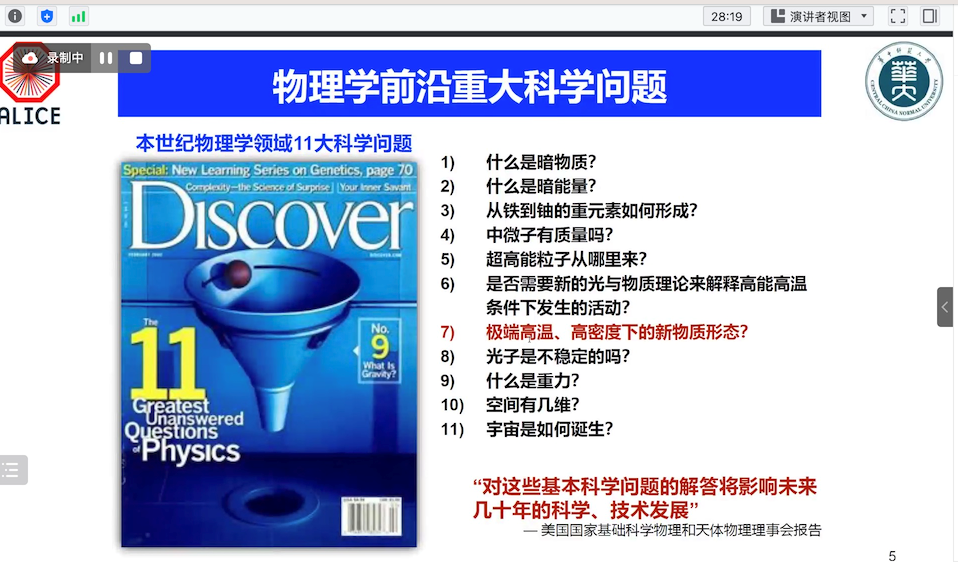 为迎接我校七十周年校庆,11月29日上午开云官网通过线上方式邀请华中师范大学周代翠教授,为我校物理系师生做了题为《欧洲CERN大型重离子对撞实验最新进展及展望》的学术报告。该报告由我校科学技术发展院、数学与物理学院联合举办,彭忻烨副教授主持,本院师生共计50余人参加。